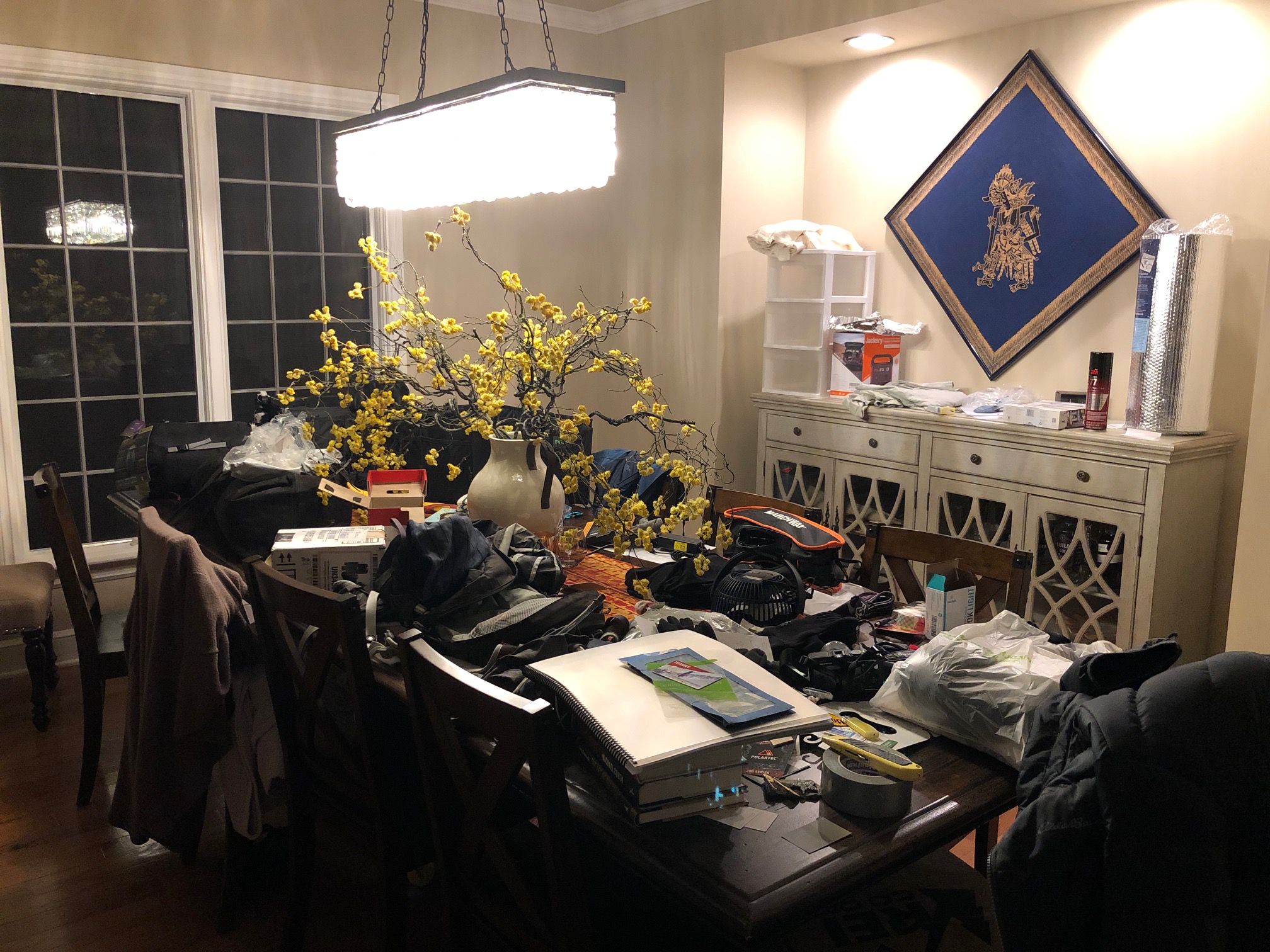 There was an incredible amount of planning for this trip that I am winging. This has been our dining room table for the last month or so.