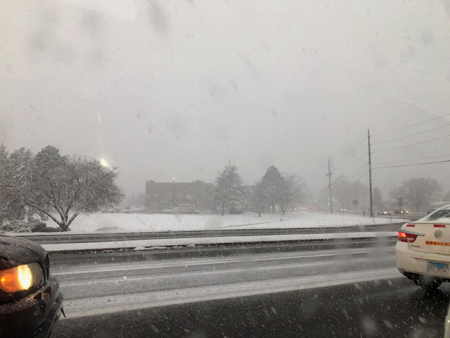 While at Union Station, it began snowing and a lot of people wanted to go outside and see/be in the snow. I decided to leave a little early to beat some of the traffic to get to Boulder. I got to drive in the Colorado snow and it was fun (I was at a red light when this was taken)!