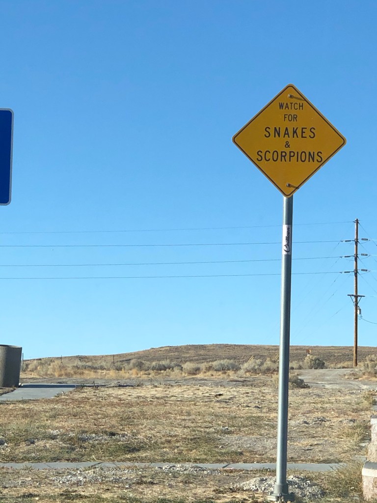 I then headed to the Bonneville Salt Flats. Basically, I went from a place with lots of people and pretty wildlife to the dreaded, boring Route 80. It was a boring drive and I had to pee pretty badly, so I stopped at one of the only rest stops (there are very few services between Salt Lake and the Bonneville Flats) only to find it was closed for maintenance. I looked over and saw like 12 port-a-potties and decided I would hold it. I detest port-a-potties. I also detest automatic flushing toilets…I have a weird thing with toilets. There was this cool sign I saw when I started leaving: